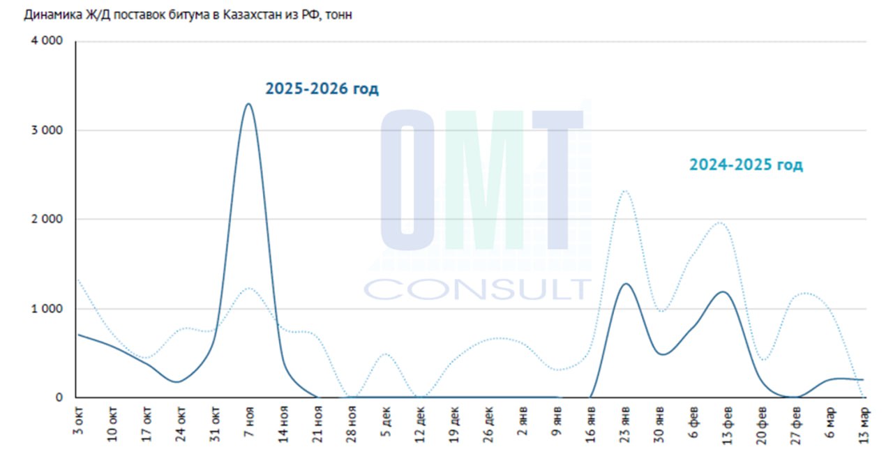 МЖ/д поставки битума из РФ в Казахстан в текущем месяце составляют лишь 391 т....